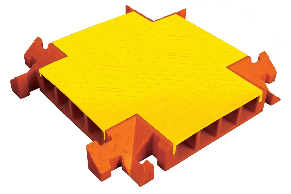- Creates a four-way intersection on Linebacker 4-Channel Cable Protectors for cables and hoses up to 3" in outside diameter