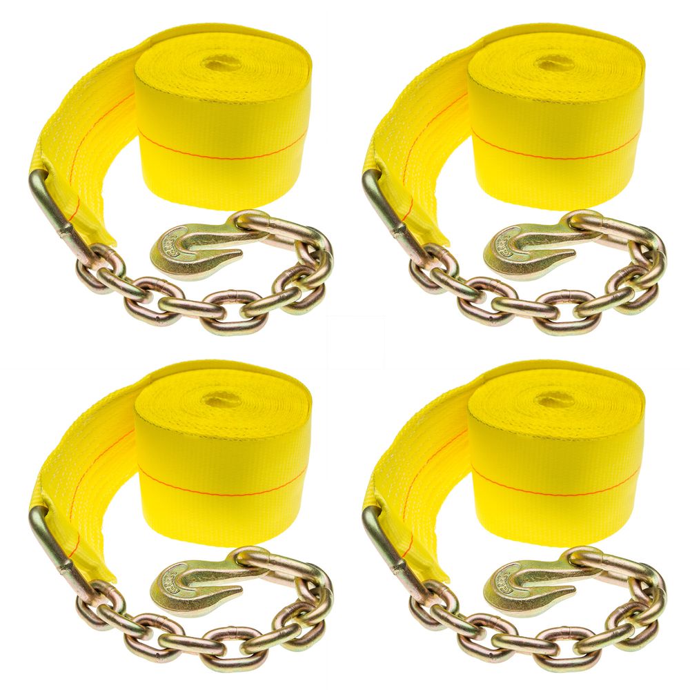 4" x 30' Heavy-Duty Winch Strap with Chain Anchor - 4-Pack