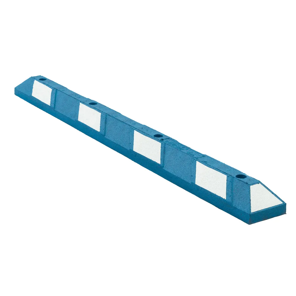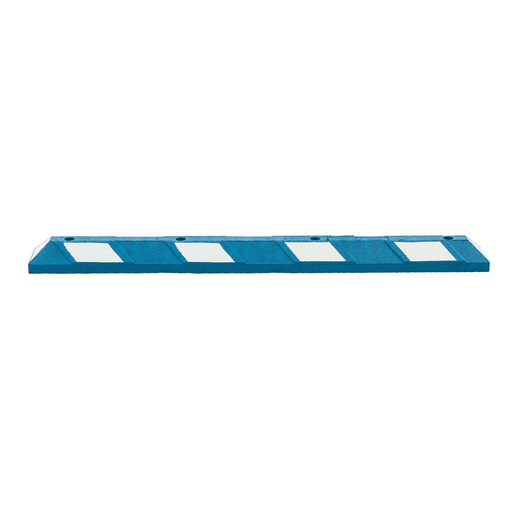 Designed specifically for handicap parking spaces, the blue and white parking curb is highly visible even at night, and immediately identifies handicap parking spots to passing vehicles. These 4" high rubber curbs won't damage cars with lower front ends. These parking stops are safer and more durable than concrete and plastic curbs, and won't crack, chip, or fade. The Park-It comes with pre-drilled 3/4" holes for permanent installation (installation hardware not included). Featuring a flexible design, these curbs easily conform to uneven surfaces.