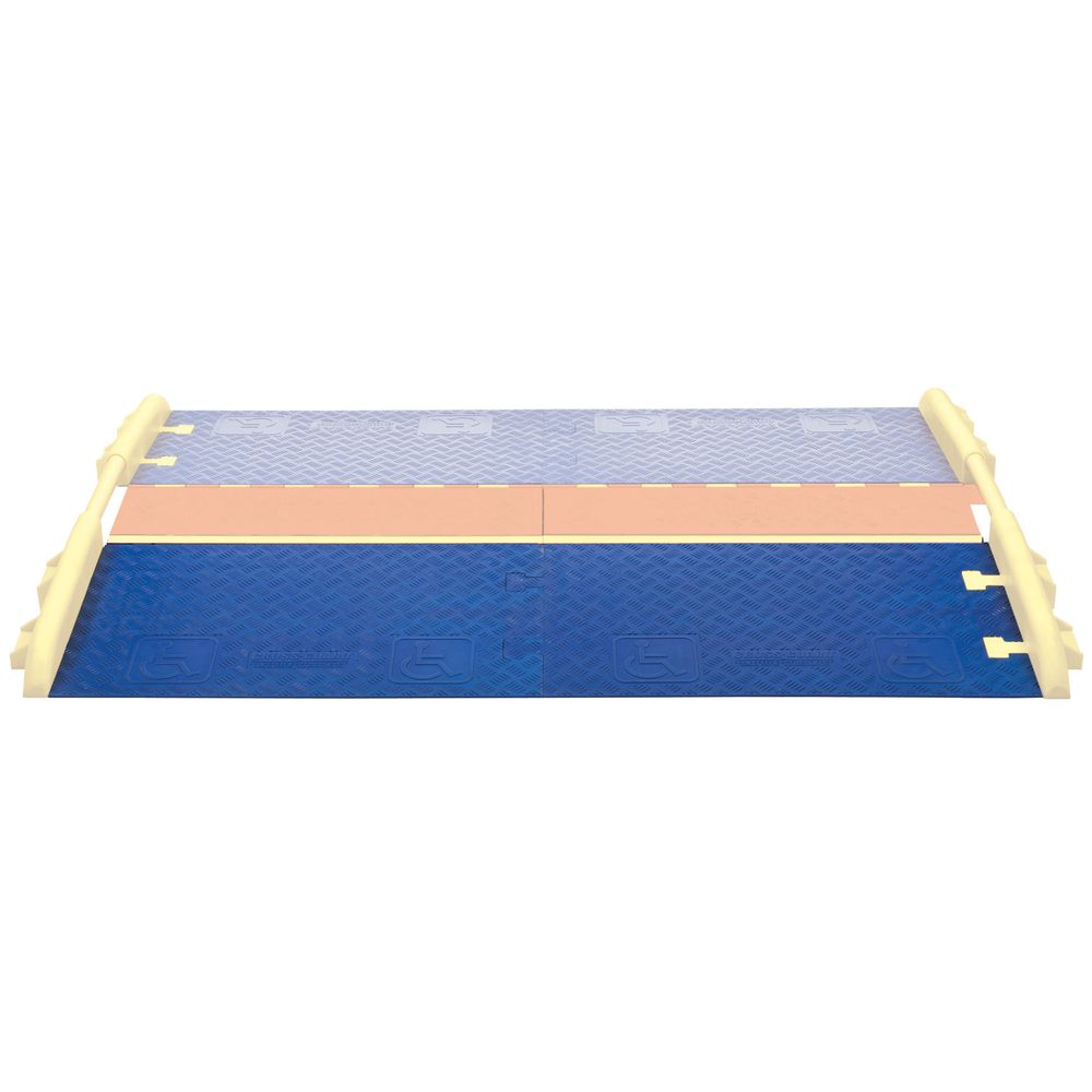 The ADA compliant cable ramp is designed to connect with the Linebacker General Purpose five-channel cable ramps to make the cable ramps ADA compliant. Constructed from all-weather polyurethane that withstands tough conditions, these wheelchair ramps provide a gradual slope with slip-resistant surface to ensure a safe crossing point for pedestrians, wheelchairs, carts, and vehicles. Multiple cable ramps and ADA cable protector ramps can be connected using their integrated T-connectors to create a complete modular system - ideal for fairs, concerts, sporting events, or any public area where cables may pose a tripping hazard. ADA compliant cable ramps still provide easy access to cables and cords so they can be placed, removed, or adjusted easily. Rails are also available to provide edge protection to prevent potential dangers like falls and roll-offs. Please Note: These ADA cable protector ramps are specifically designed to only work with the Linebacker General Purpose five-channel cable ramp, and use with any other ramp will result in product failure. Cable protectors and rails sold separately.