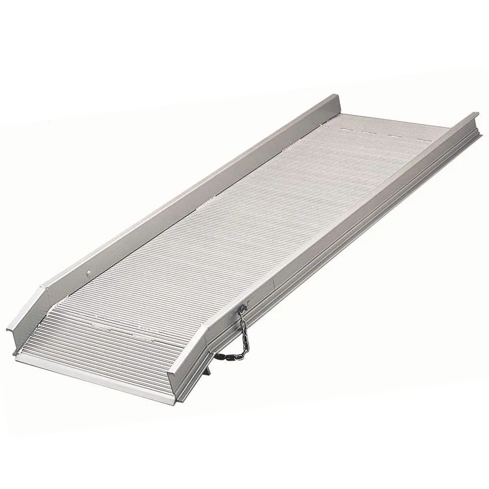 This apron-end aluminum walk ramp makes loading and unloading vans/trucks a breeze! Manufactured with lightweight aluminum making set up easy for one or two people, but strong enough to support 3,000 lb loads. A twin-tooth walking surface provides traction when traveling in either direction, and an angled apron provides a smooth transition from ramp to vehicle. Secure the ramp to your vehicle with the two included heavy-duty safety chains to prevent the ramp from kicking out. This 43 lb ramp is 39" wide and 3' long.