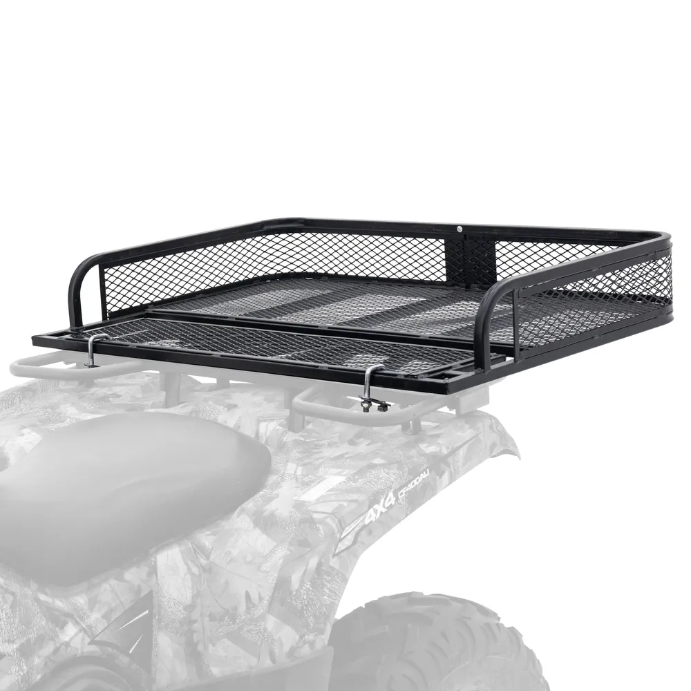 The Rear Cargo Basket mounts to the tubular rack on your ATV or UTV, offering convenient storage for hauling tool boxes, coolers, camping, or hunting gear from the hunting shack to fieldwork or your campsite. Constructed from durable steel, this mesh-styled rack allows dirt and debris to fall right through, making it perfect for the trails. Forgo hooking up the trailer or spending time bungee cording down all your gear; this easy-to-install convenient rack fits on a wide variety of vehicles and trailers that could use extra storage. Use it anywhere you need a spot to keep your extra supplies.