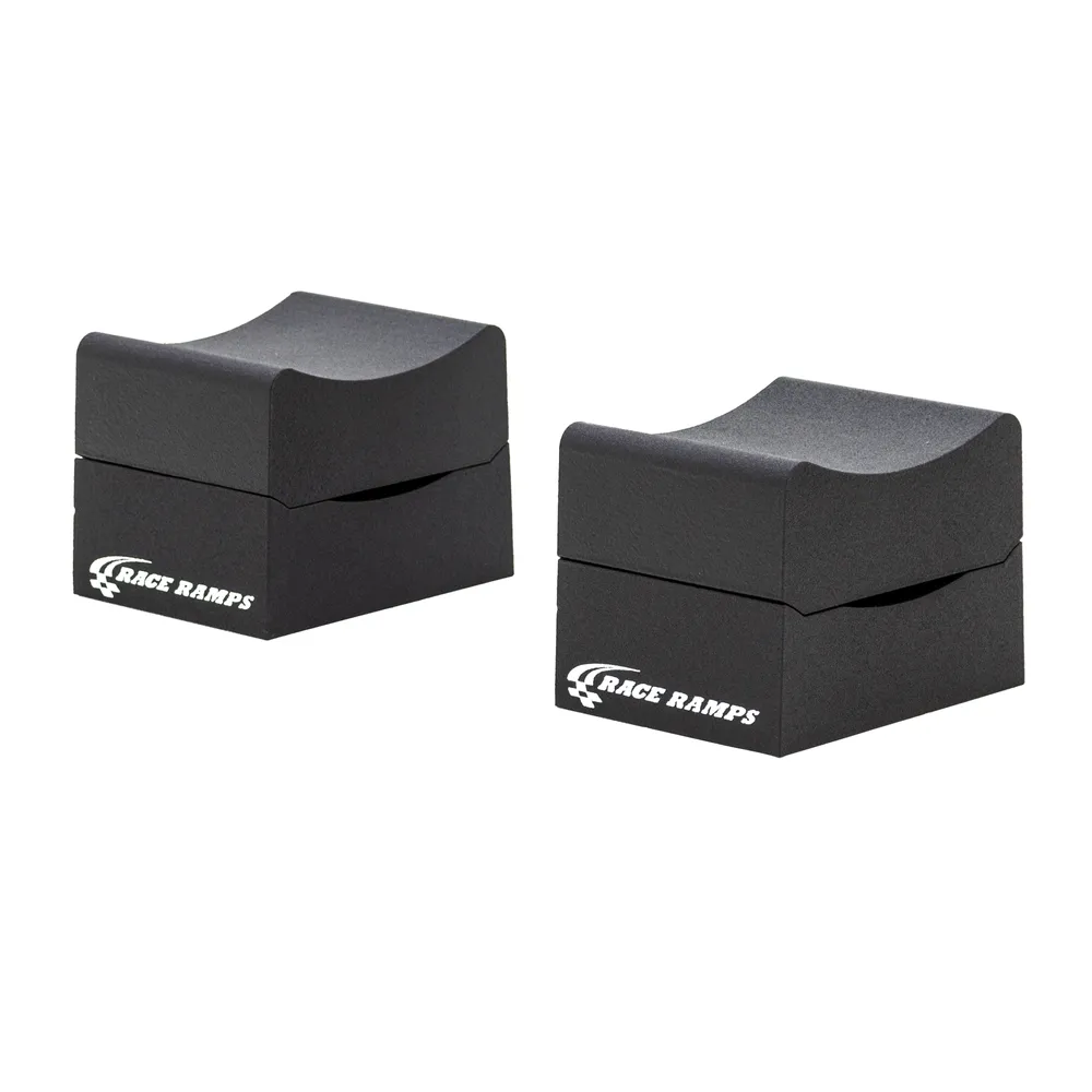 Support your vehicle for oil changes and maintenance with the Race Ramps™ 10" Wheel Cribs. This kit includes a total of four durable and lightweight wheel cradles. Use them individually to raise your vehicle 5" off the ground or interlock two cribs together for an 10" lift height.