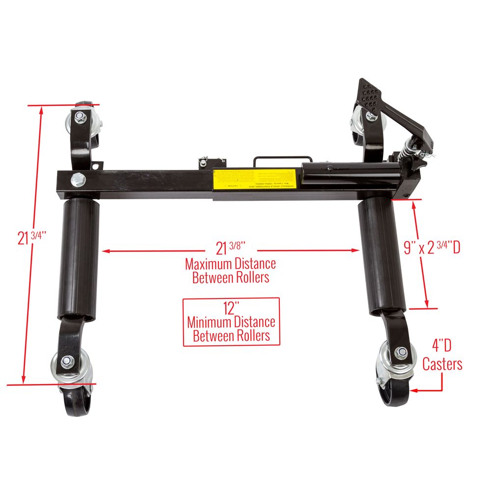 - Heavy-duty 1,500-pound capacity hydraulic wheel skates