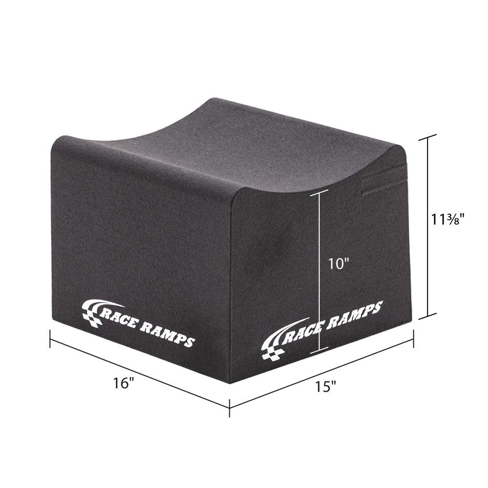 Support your vehicle with the Race Ramps™ 10" Supercar Wheel Cribs. This kit includes two durable and lightweight foam wheel cradles with a high-traction coating that provides up to 10" of lift high for display, service, maintenance and more. The 16" width is perfect for cars with extra-wide tires, and each crib can support up to 1,500 lbs. Jack stands must be used for placement.