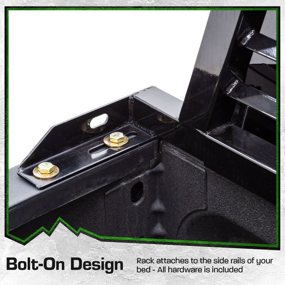 Protect your cab and haul safely with the Elevate Outdoor Louvered Headache Rack. The simple design offers improved visibility out of the rear, and the louvers provide additional places to tie down your load. This headache rack is manufactured from heavy-duty, powder-coated steel; the adjustable inside width measurement is 59" to 74.5" to fit trucks of most makes and models. All hardware is included.