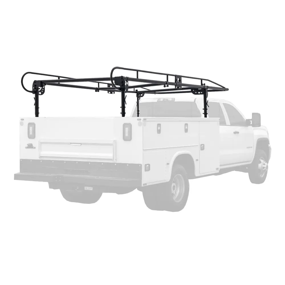 Designed for service pickup trucks with boxes, the Elevate Outdoor Steel Universal Service Truck Rack holds equipment and materials up to 1,000 lbs. when the cargo length is prohibitive for the cabin or boxes. Manufactured from durable, powder-coated steel, it is height adjustable from 21" to 30" to accommodate varied box heights.
