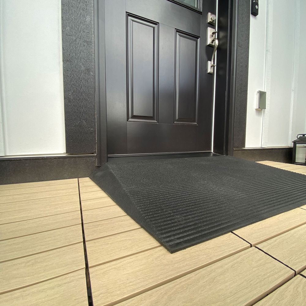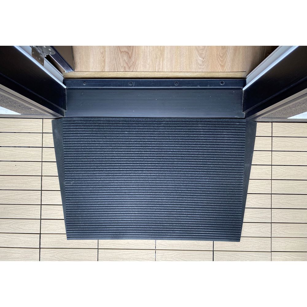 Provide a smooth, gradual transition from the ground to a doorway threshold with the 25 inch Black EZ-ACCESS ® TRANSITIONS ® Portable Rubber Threshold Ramp. Manufactured with 100% recycled rubber, this ramp has a large 850 pound weight capacity and comes with beveled sides, which makes it ideal for sliding glass doors because it will not interfere with the door track. This ramp can accommodate rises up to 2.5 inches high and has an integrated non-skid surface for maximum traction.