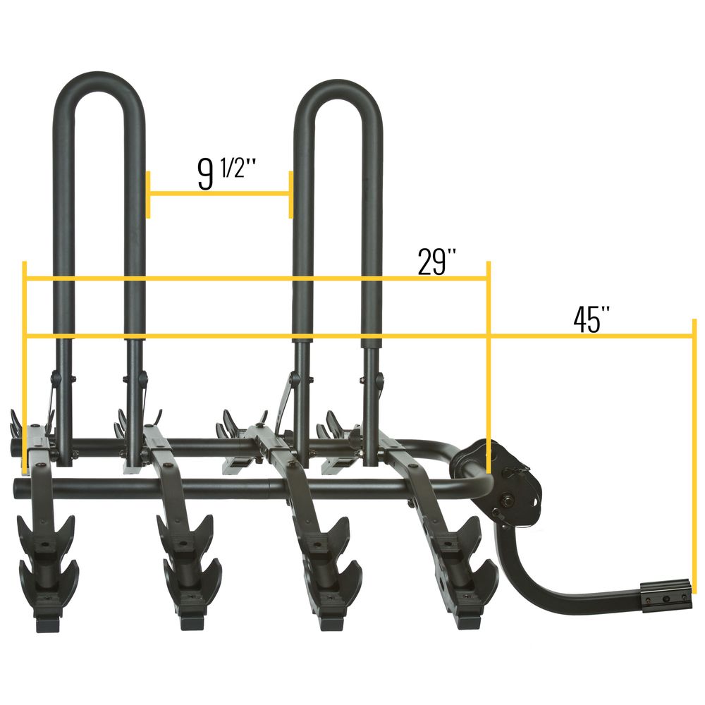- Includes (6) additional 18" tie down straps (3 per bike) and (1) 12' tie down strap to secure bikes to rack