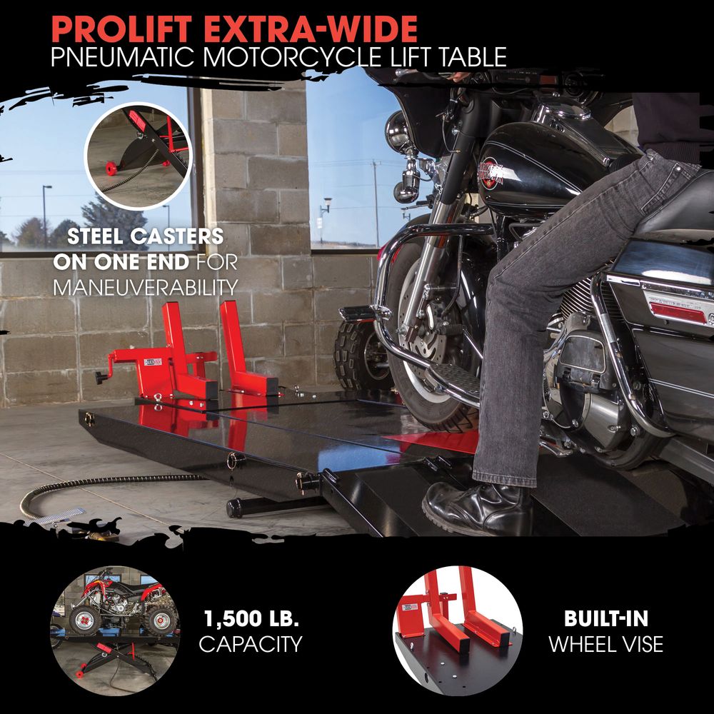 Black Widow ProLift Extra-Wide Pneumatic Motorcycle Lift Table - 1,500 lb. Capacity
