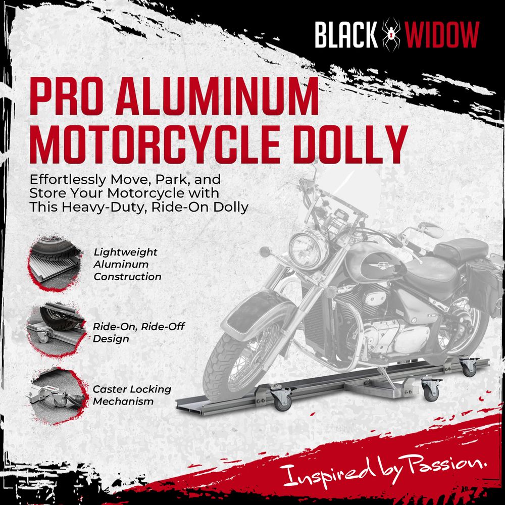 Move your motorcycle around your garage with ease on the Black Widow Pro Dolly