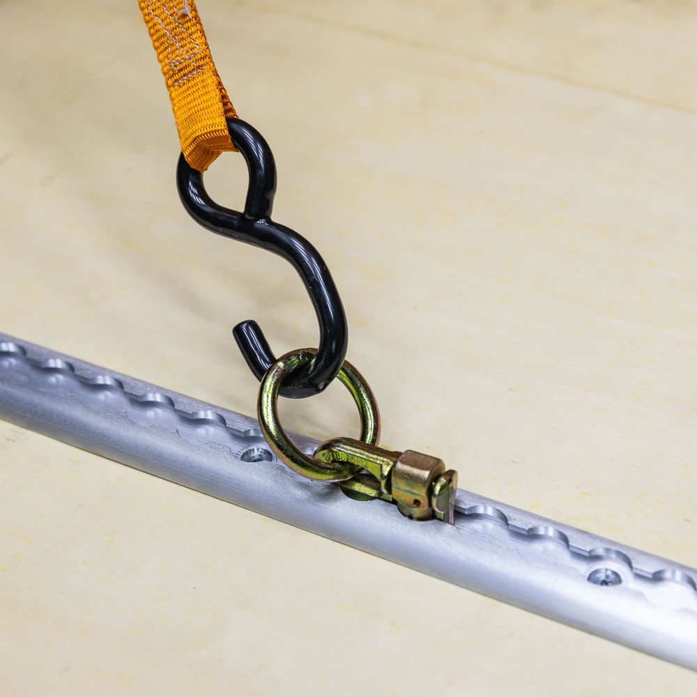 Our patented aluminum VersaTie track is designed to a 3,000 lb. Minimum Breaking Strength (MBS) in vertical pull and a 2,000 lb. MBS at 45°, giving you the capability to handle the heaviest load. There's an attach point every inch, so you can find the perfect anchor points to tame even the most unwieldy load.