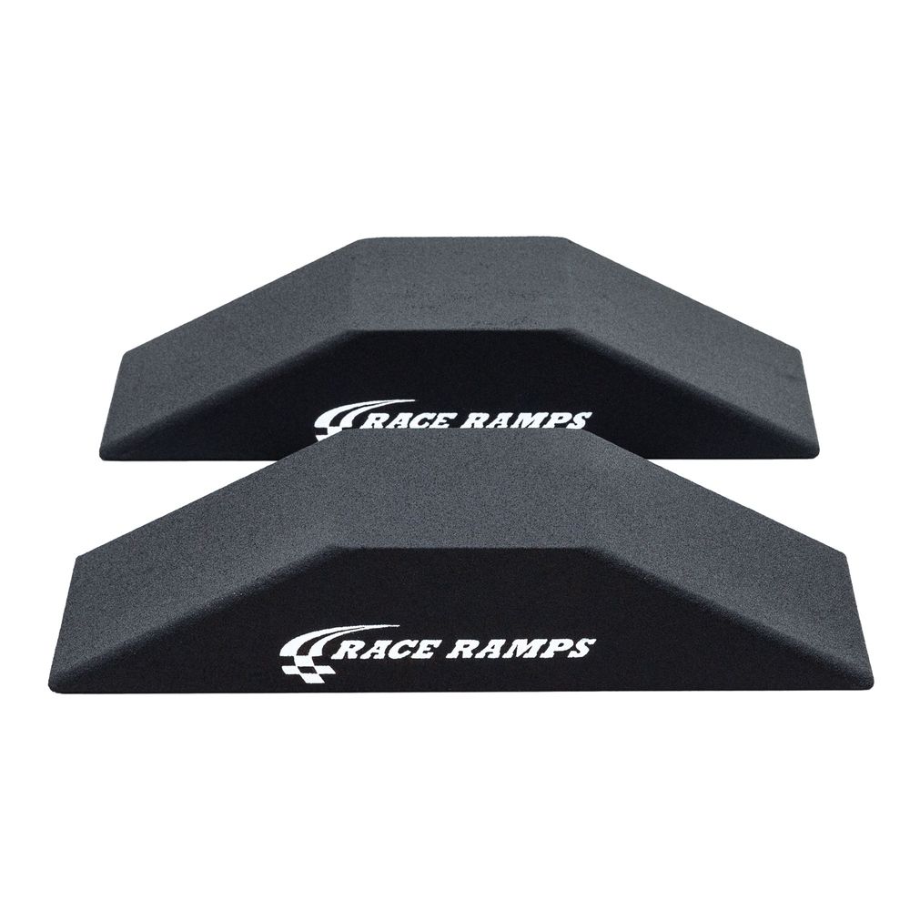The Race Ramps™ Solid Car Show Ramps feature a 14" wide approach. These ramps are manufactured from high-density foam with a high-traction coating, which means they are lightweight (only 5 lbs. each) and support up to 1,200 lbs. per ramp. The versatile drive-on car ramps should be used with cars that have ground clearances of 5.25" or more.