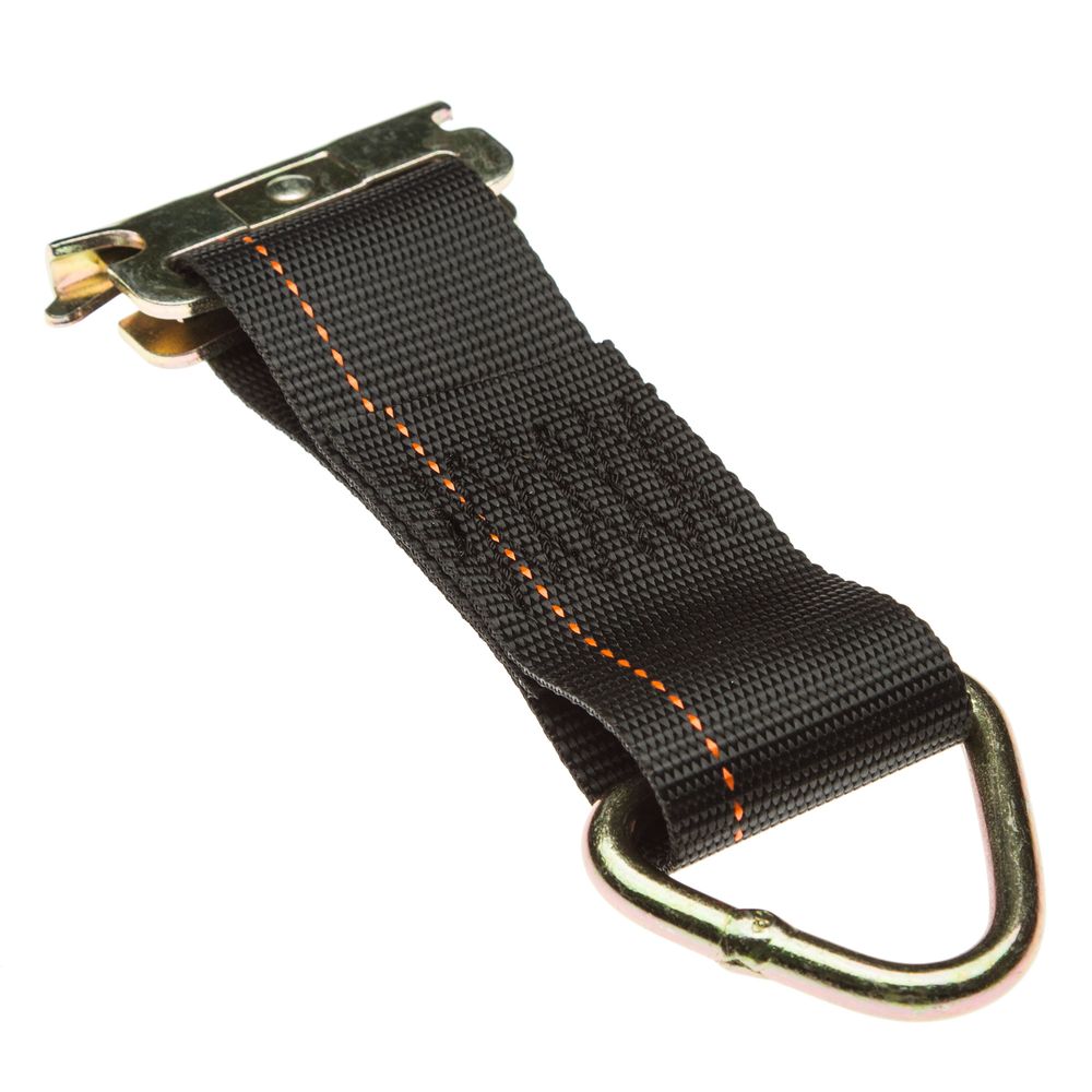 Snaps into an E-track rail to provide extra tie down points for use with S- or J-hook style tie down straps. Made with an E-strap, triangle loop attachment, and E-fitting end for securing.