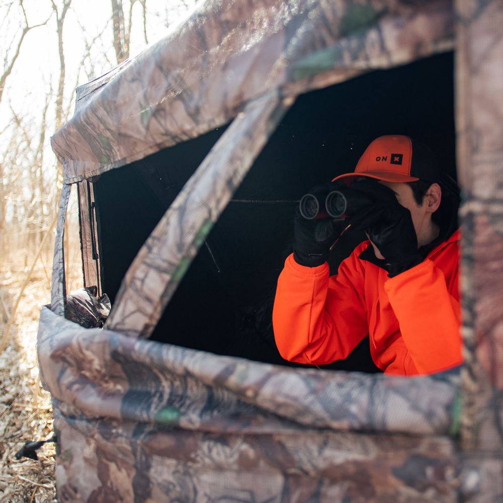 - Three full-width panoramic shooting windows; two with heavy-duty fabric, rear viewing window and silent slider window adjustment, one with one-way see-through mesh
