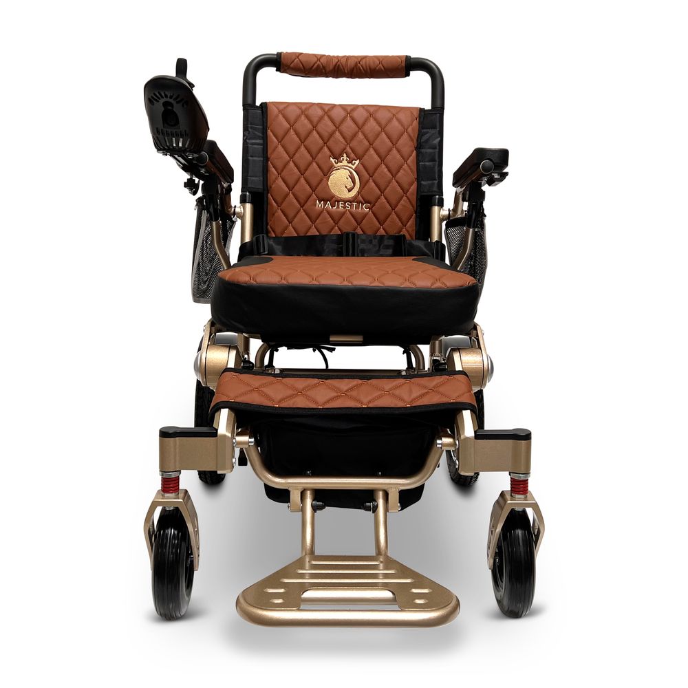 ComfyGo Majestic 20AH Remote-Controlled Electric Wheelchair w/Auto-Fold - Bronze Frame/Taba Faux Leather