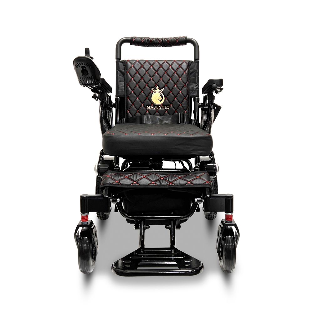 ComfyGo Majestic 12AH Remote-Controlled Electric Wheelchair - Black Frame/Black Faux Leather