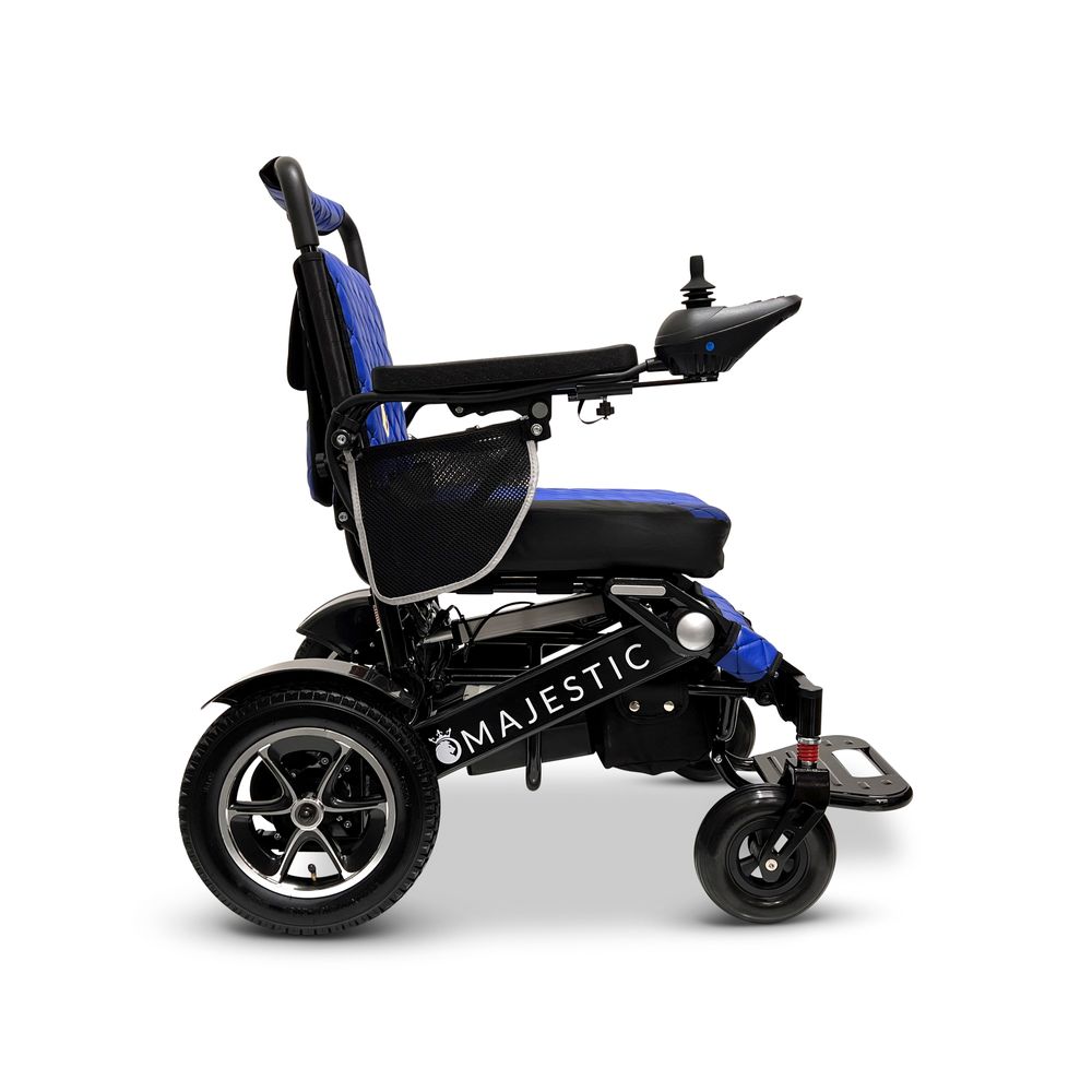 ComfyGo Majestic 20AH Remote-Controlled Electric Wheelchair - Black Frame/Blue Faux Leather