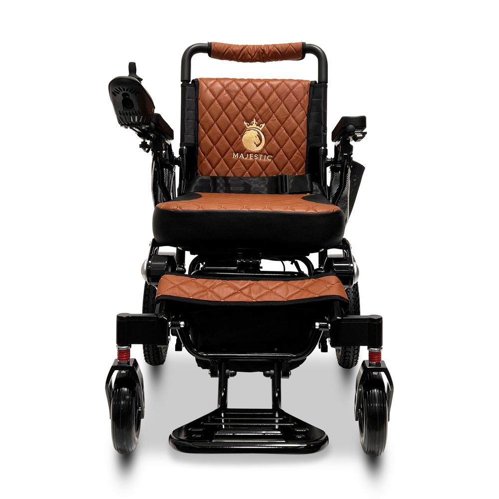 ComfyGo Majestic 20AH Remote-Controlled Electric Wheelchair - Black Frame/Taba Faux Leather