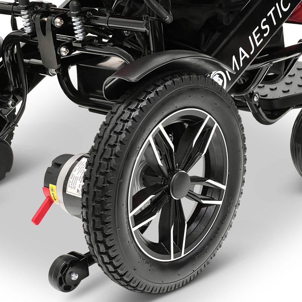 ComfyGo Majestic 20AH Remote-Controlled Electric Wheelchair with 17.5" Seat - Black Frame/Red Faux Leather