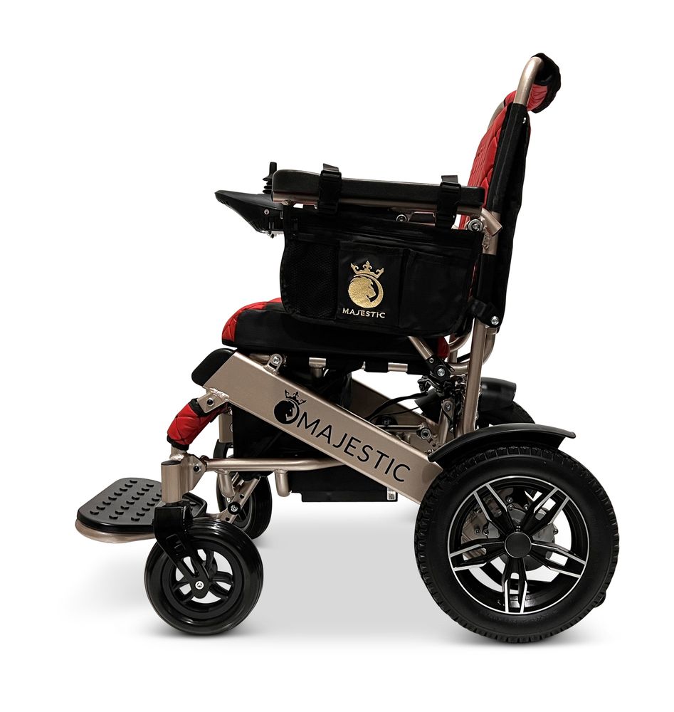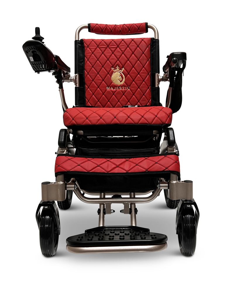 ComfyGo Majestic 20AH Remote-Controlled Electric Wheelchair with 17.5" Seat - Bronze Frame/Red Faux Leather
