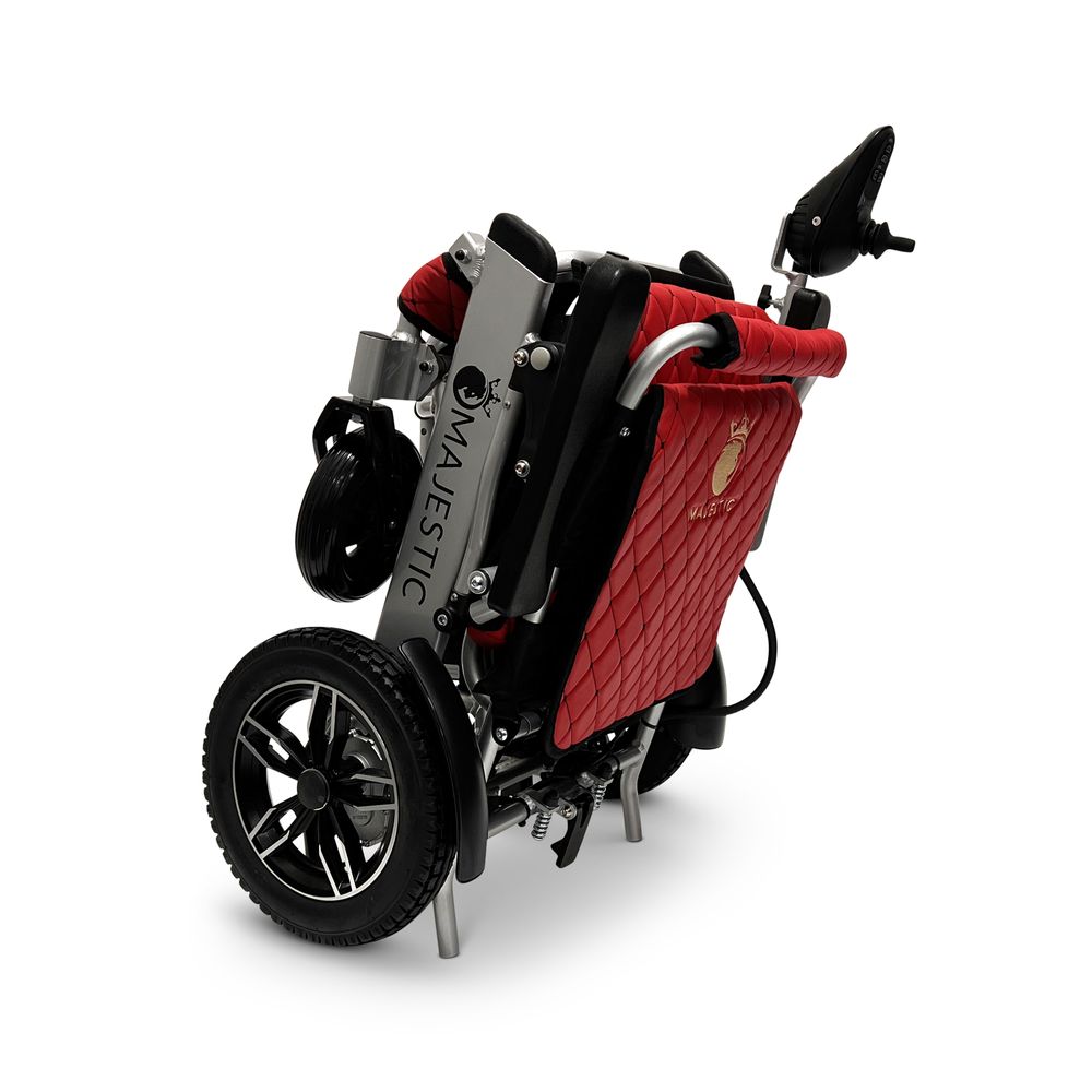ComfyGo Majestic 20AH Remote-Controlled Electric Wheelchair with 17.5" Seat - Silver Frame/Red Faux Leather