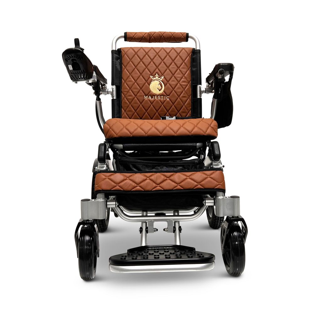 ComfyGo Majestic 20AH Remote-Controlled Electric Wheelchair with 20" Seat - Silver Frame/Taba Faux Leather