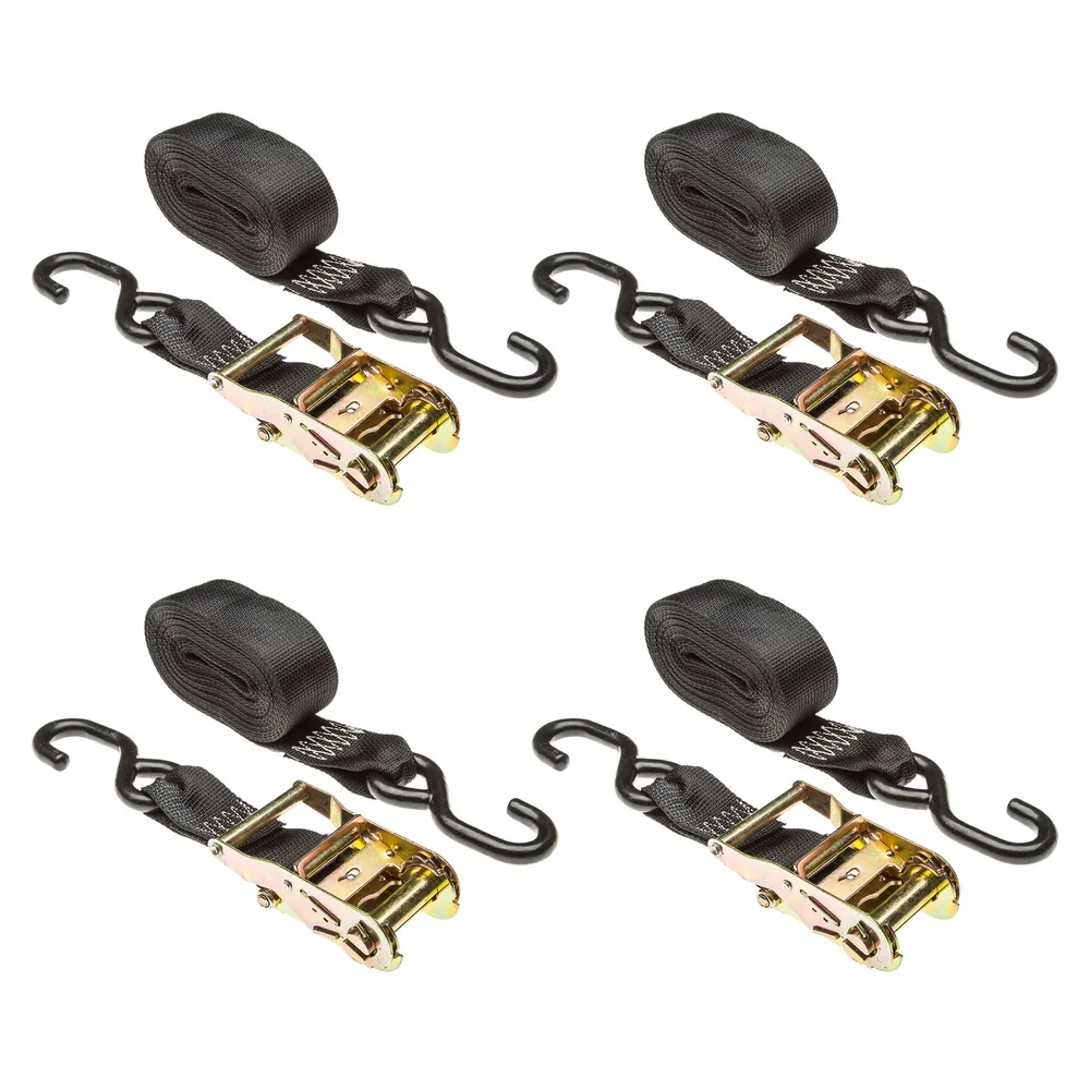 2" x 18' Ratchet Straps with S-Hooks - 4-Pack