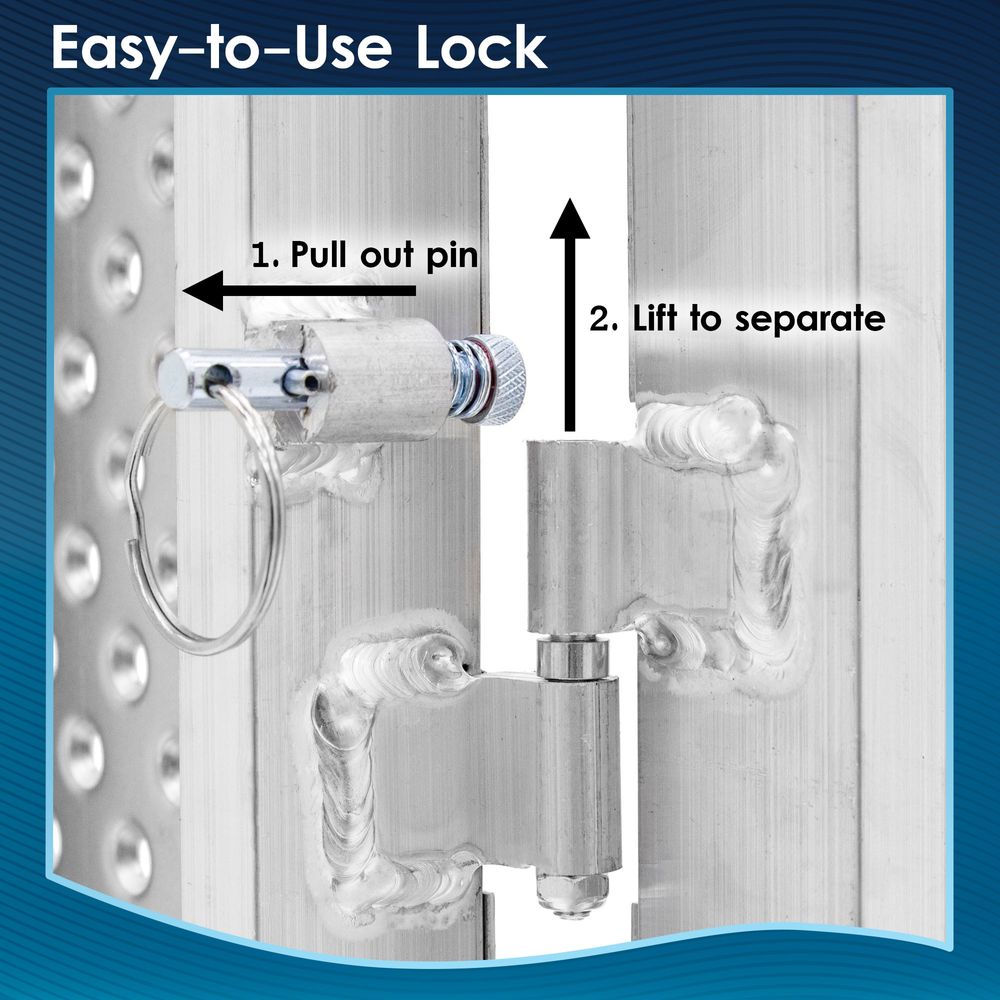 A high-traction punch plate surface and ultra-lightweight aluminum construction sets this single-fold wheelchair ramp apart from the rest. This durable and portable ramp is ideal for overcoming rises up to 8" high in any weather conditions thanks to serrated, punch-plate holes that easily grip the wheels of any wheelchair, mobility scooter, or shoes. Fold it in half and take it on the road using built-in ergonomic handles or separate the ramp into two sections for a lighter load.