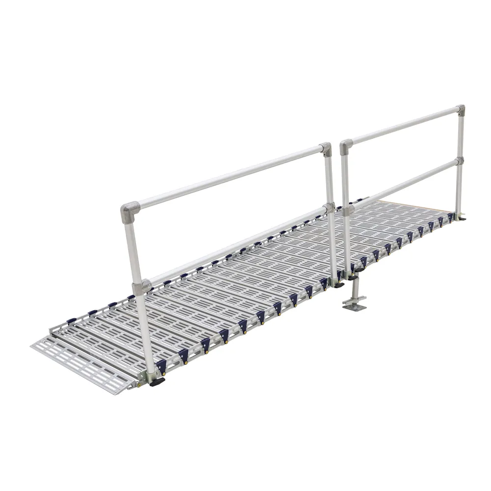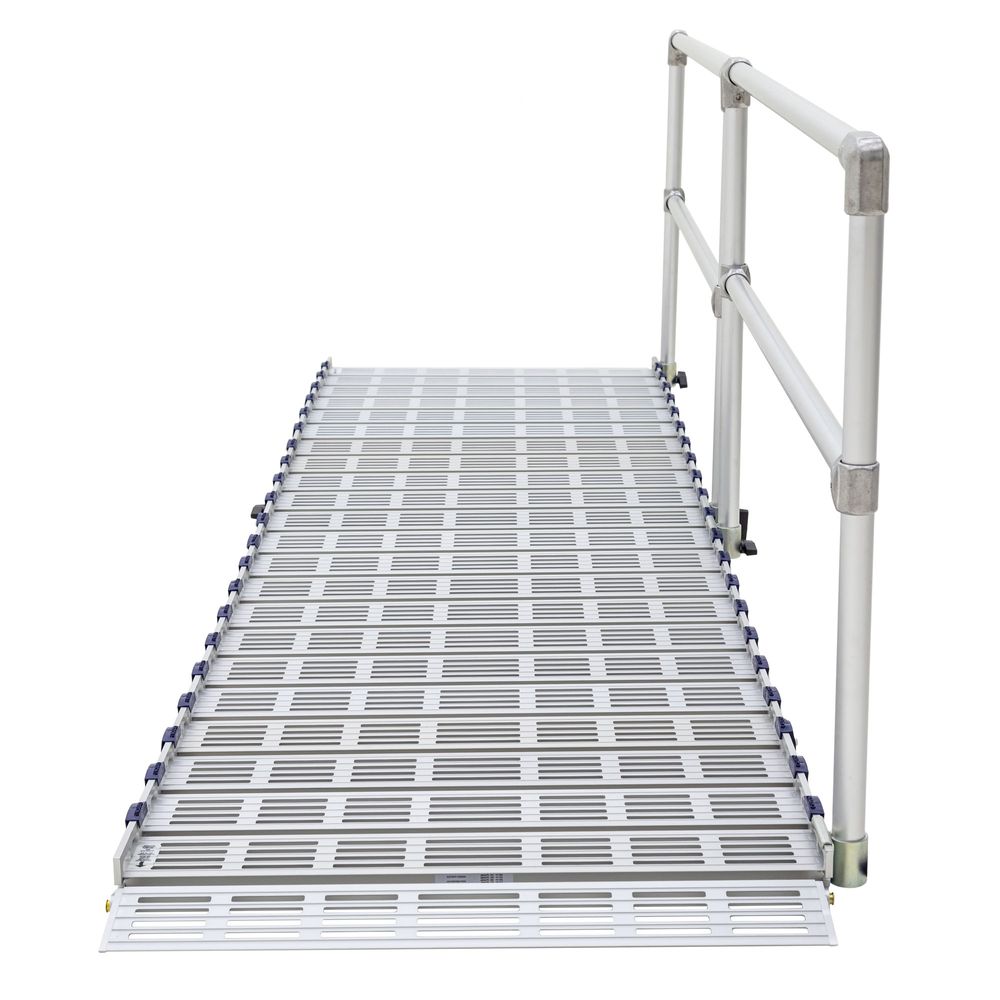 - Includes all necessary components for ramp installation: Ramp sections for 12' length, handrails for one side, support stands, lower and upper approach plates, quick-connect pins