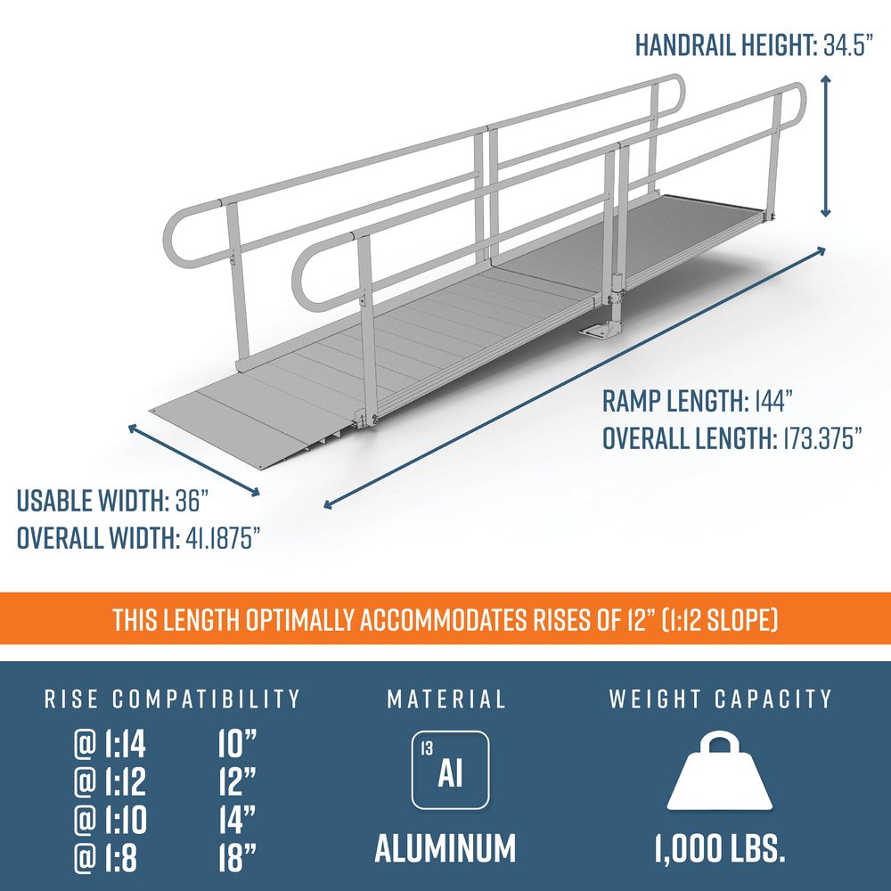 12' L x 3' W EZ-ACCESS® PATHWAY Straight Aluminum Wheelchair Ramp Kit
