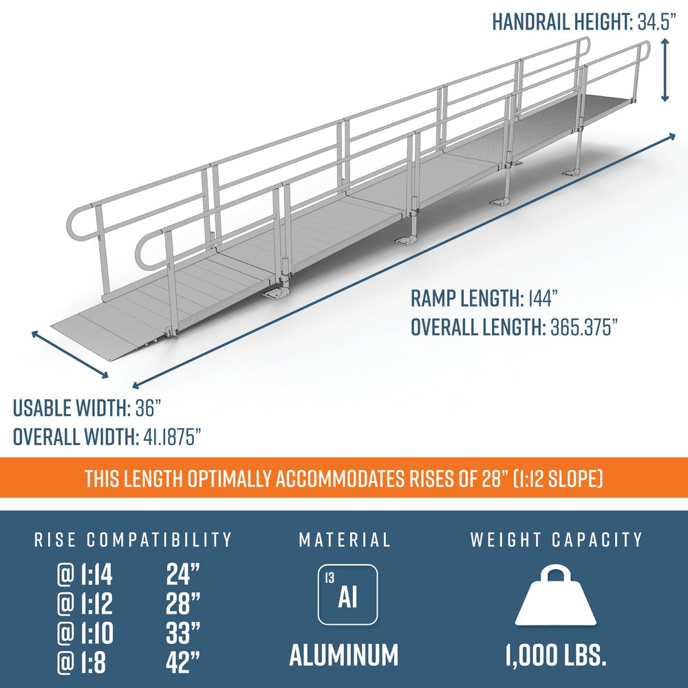 28' L x 3' W EZ-ACCESS® PATHWAY Straight Aluminum Wheelchair Ramp Kit