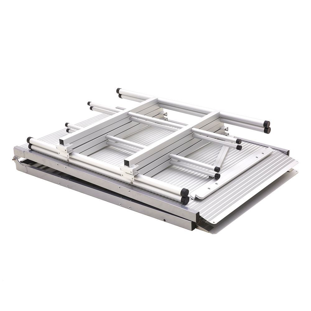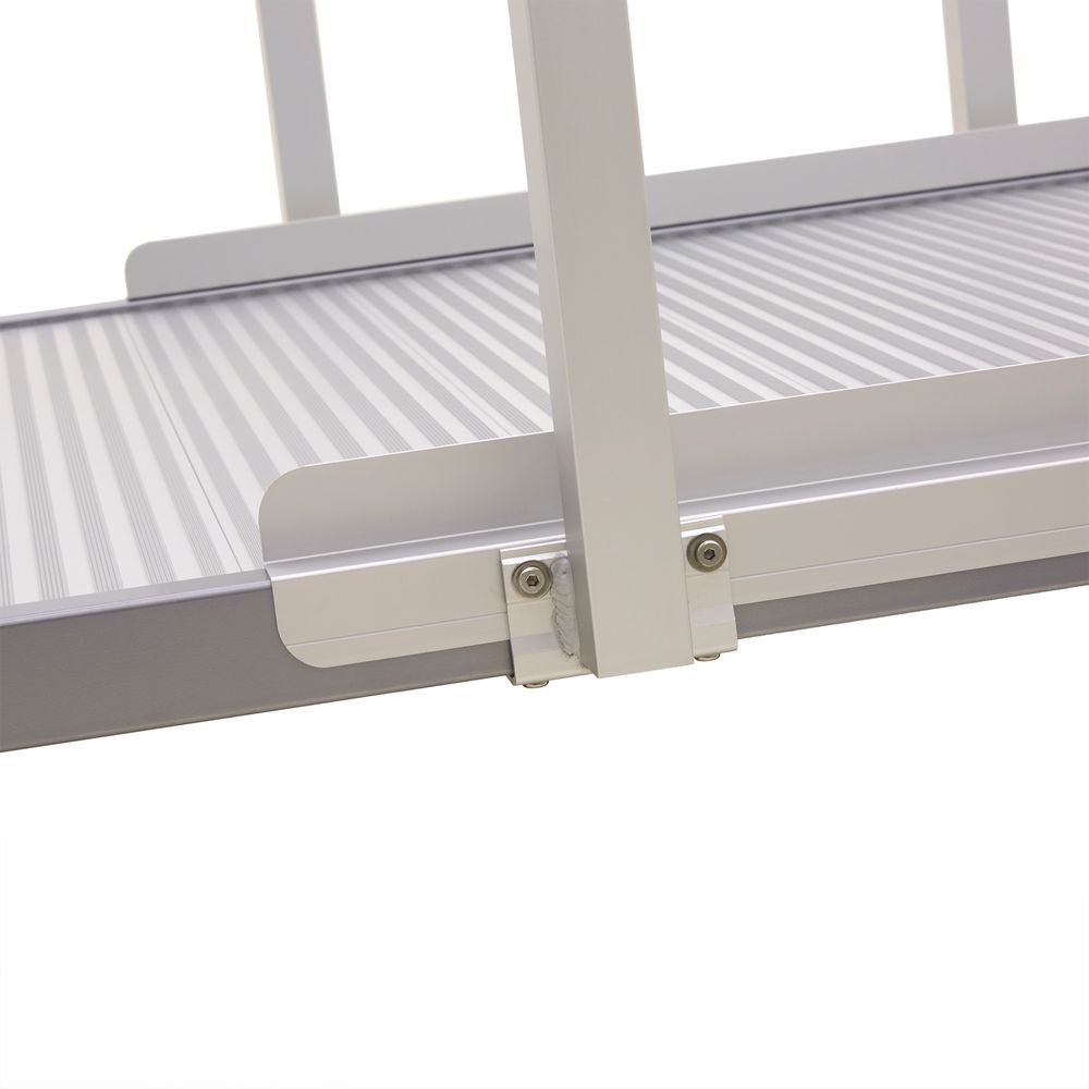 Manufactured of lightweight, high-strength aluminum with a slip-resistant surface texture, this ramp is weatherproof and durable for years of maintenance-free use. The two-level handrails accommodate adults and children who walk by themselves or assisted, in addition to individuals in manual or electric wheelchairs or scooters.