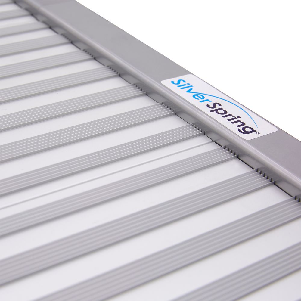 The 7' L Silver Spring Folding Aluminum Wheelchair Access Ramp with Handrails increases accessibility to entryways, patios or similar locations where steps pose a problem for individuals with limited mobility. With a compact design, it ships folded to save you money and unfolds easily upon arrival for easy installation in your space.
