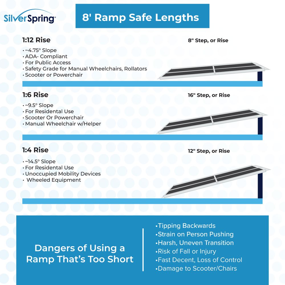 8' L Silver Spring Folding Aluminum Wheelchair Access Ramp with Handrails
