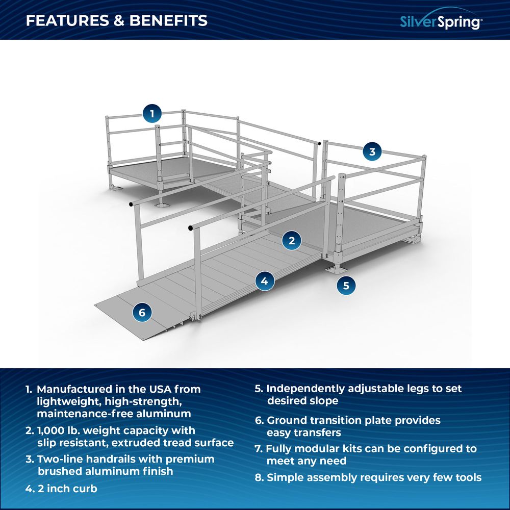Silver Spring Clearway 13' L-Shaped Modular Ramp with 5' Platform and Turn