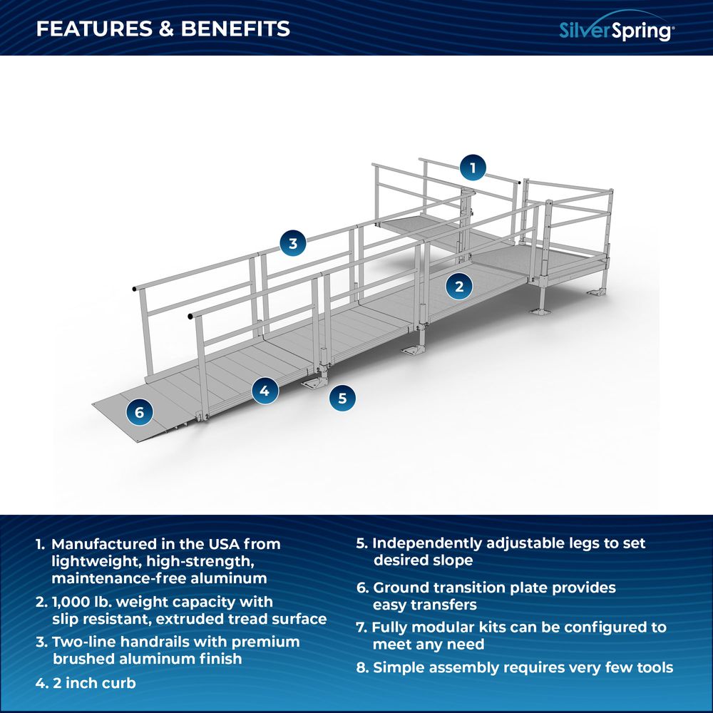 Silver Spring Clearway 20' L-Shaped Modular Ramp with 4' Turn Platform
