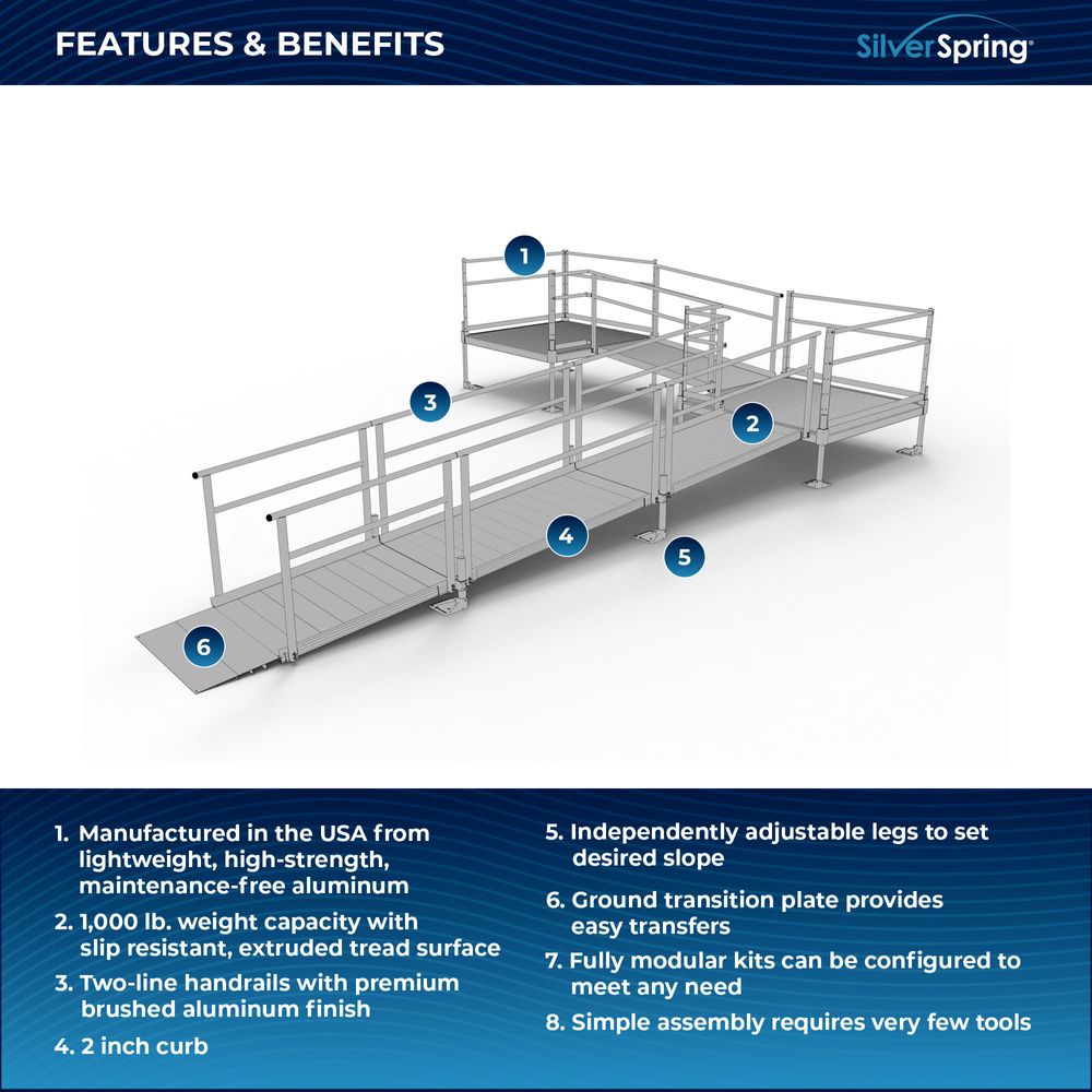 Silver Spring Clearway 22' L-Shaped Modular Ramp with 5' Platform and Turn