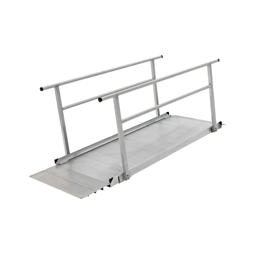 - Includes one 6' ramp, accompanying two-line brushed aluminum handrails for added support