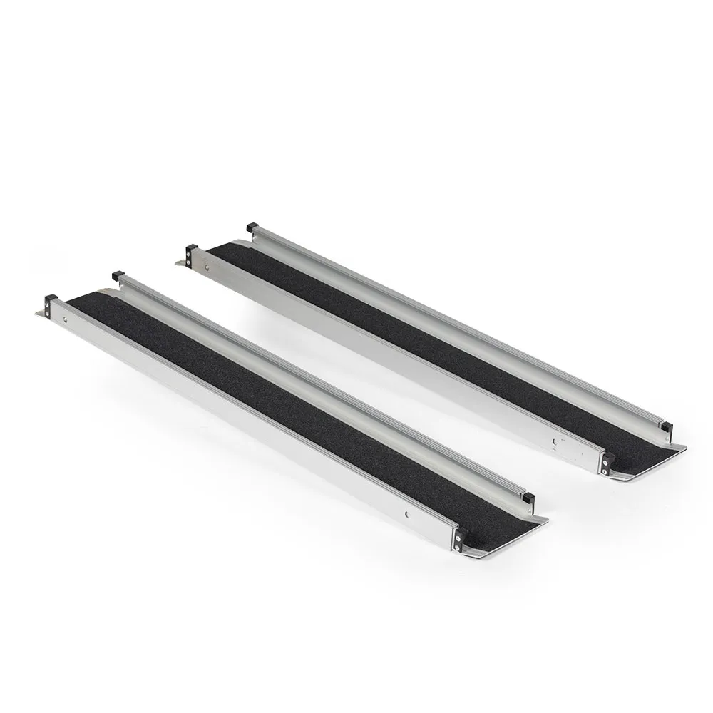 - Sections lock into place once expanded; works with wheelchairs that have aligned front and rear wheels