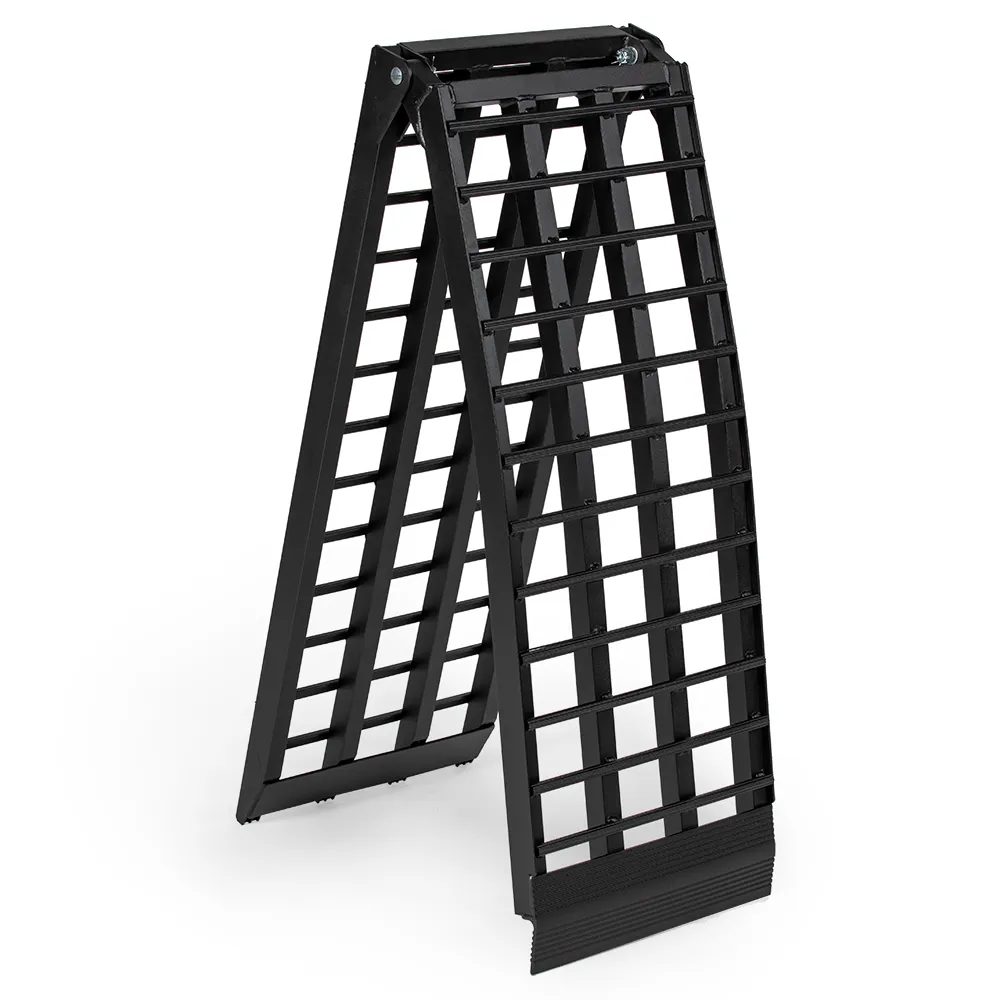 The Titan Ramps 7' 10" Heavy-Duty Arched Motorcycle Ramp is constructed for the highest-level performance while remaining lightweight and mobile. Built as a fully functional single-runner folding ramp compatible with most motorcycles, dirt bikes, cruisers, and motor scooters. This arched utility ramp sets the standard for safely transporting two-wheeled vehicles with its powerful weight capacity of up to 1,000 lb.