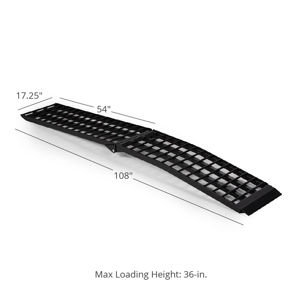 The Titan Ramps 9' Heavy-Duty Arched Motorcycle Ramp is constructed for the highest-level performance while remaining lightweight and mobile. Built as a fully functional single-runner folding ramp compatible with most motorcycles, dirt bikes, cruisers, and motor scooters. This arched utility ramp sets the standard for safely transporting two-wheeled vehicles with its powerful weight capacity of up to 1,000 lb.
