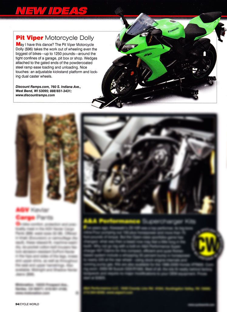 The sport bike/motorcycle dolly will make it easier to maneuver your bike around the shop or garage. Made from high quality 12 gauge steel powder-coated black, the motorcycle dolly supports many motorcycles up to 1,250 pounds. The easy-to-use front and rear gates help get the motorcycle on and off the dolly with a simple pull of their respective levers. The ramp wedges attached to the gate help get the bike onto the motorcycle dolly and keep the dolly from sliding.