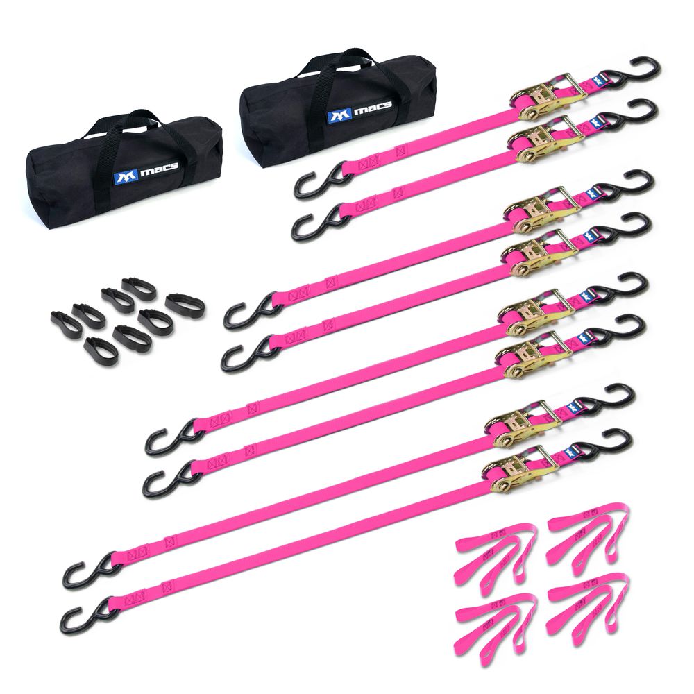 You get four pairs of 1" straps, plus a full complement of soft loops, so you can secure motorcycles, coolers or most any lightweight cargo.