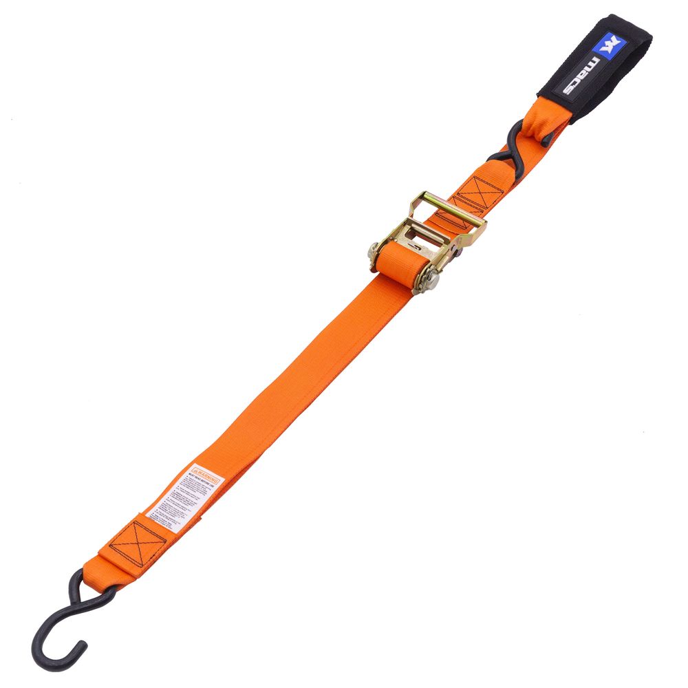 2" x 6' Motorcycle Ratchet Pack with Integrated Soft Loops, S-Hooks - Orange