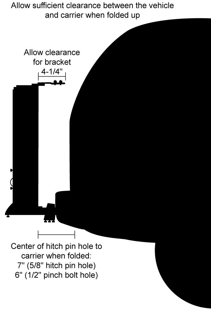 - Carrier can be folded up flat vertically against the rear of the vehicle saving space when not in use