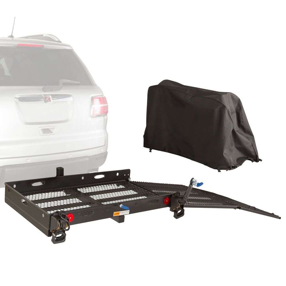 - Also includes a multi-level hitch adapter, spring pin handles, retractable tie-downs, and a scooter cover
