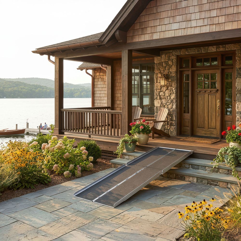 Don't let a few small steps prevent you from getting where you need to go! Use the 7 ft. Silver Spring Multi-Fold Wheelchair Ramp to quickly access entryways, patios, and similar areas. Manufactured from high-strength, lightweight aluminum, this ramp is designed to be highly portable. For transport, it can fold down to a quarter of its size, and by simply pulling a safety release pin it will break down into two easy-to-carry pieces with built-in handles. An included hook and loop latch keeps the ramp folded firmly together when not in use. This ramp is compatible with all styles of wheelchairs, power chairs and mobility scooters, it comes with a 600 lb. weight capacity to ensure your safety. For a semi-permanent or permanent installation, this ramp comes with mounting holes and has steel security pins.