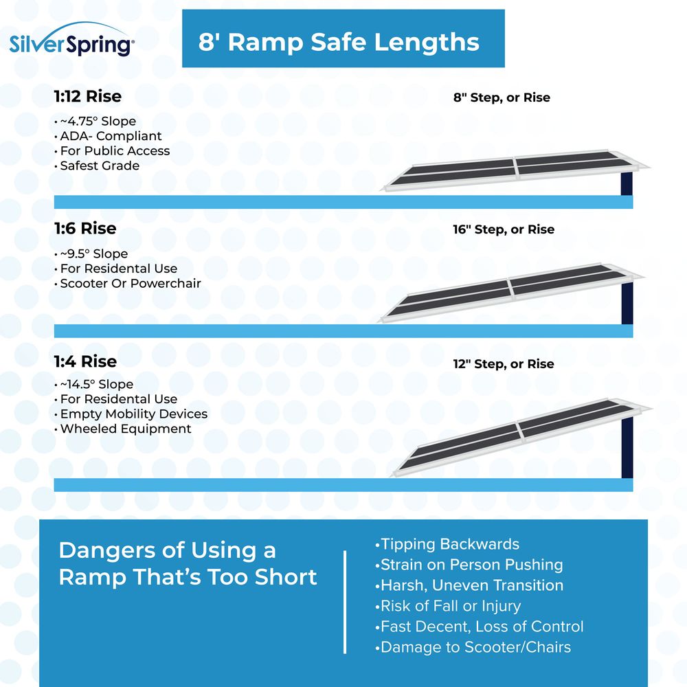 - Measures 8' L x 29.5" W and accommodates up to a 16" rise