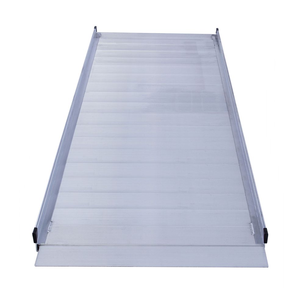 Designed for residential use, these semi-permanent wheelchair ramps can be easily moved or relocated as your mobility needs change. Manufactured from aluminum, these ramps feature seamless construction, a slip-resistant surface, and a self-adjusting ground transition plate. Weather-proof and durable, these maintenance-free ramps are an excellent alternative to wood. They will not rust or rot, guaranteeing years of use. Two pre-drilled mounting holes make it easy to permanently install the ramps if necessary.